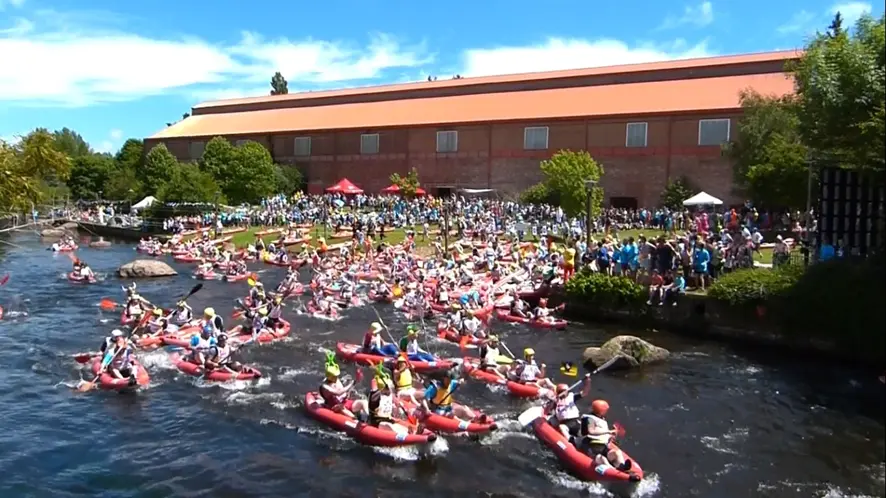 La remontée du parcours est l’occasion de voir les stratégies de dépassement en tous genres. Après la remontée vient le passage de l'écluse : l’ascenseur à kayaks, unique en Europe, arrive à point nommé pour retrouver des forces avant d’attaquer le parc d’eau vive.